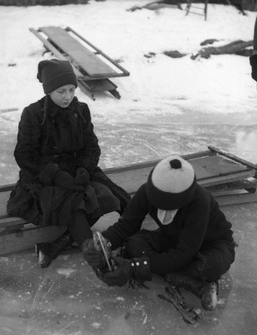 Man putting on ice skate on woman’s leg Published December 2, 2012 at 368 × 480 in Frozen, and Friction-Free Man putting on ice skate on woman’s leg — Image by © Bettmann/Corbis