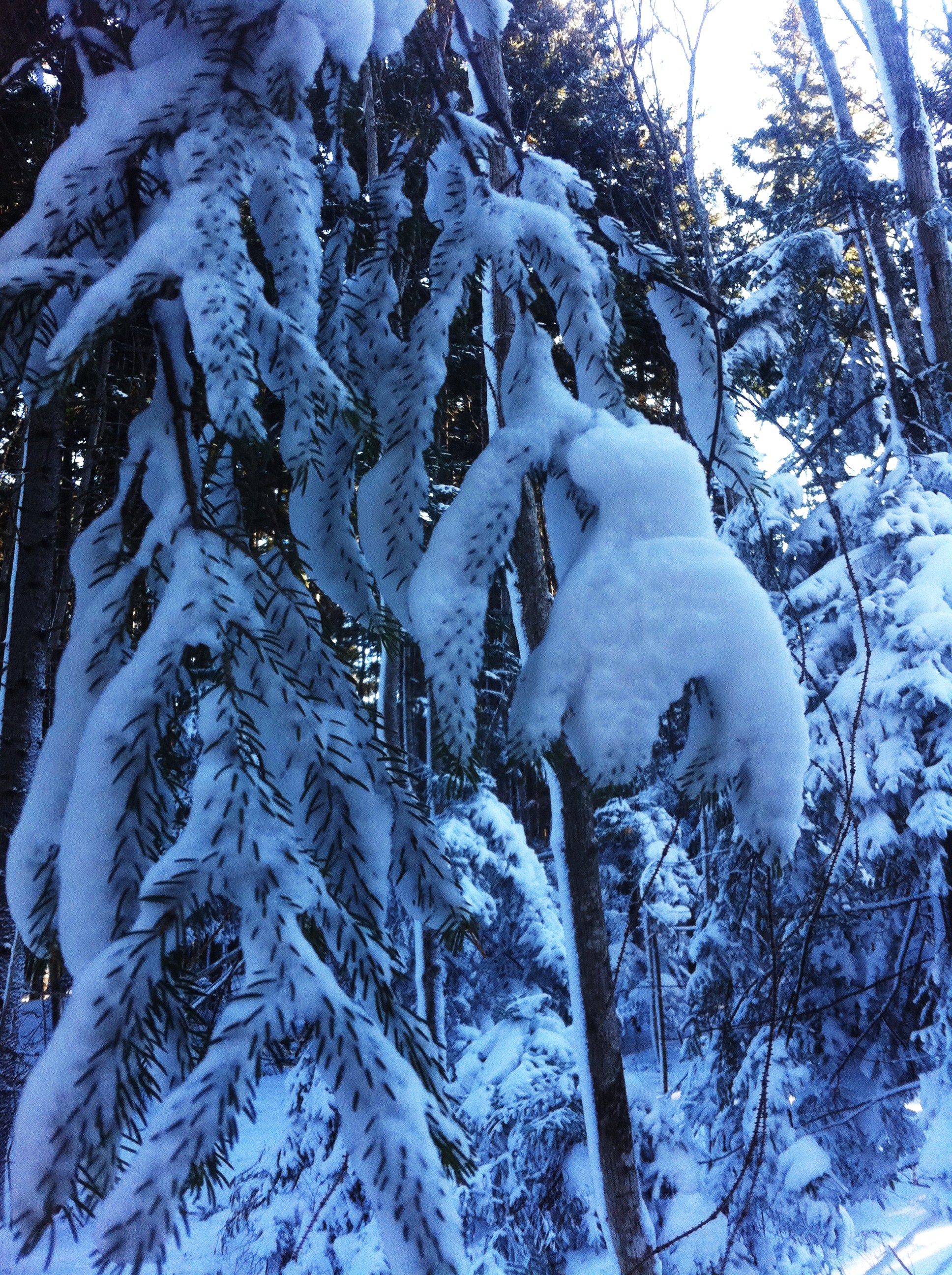 After the snow came roaring through, again, a few days ago, my friend and I drove down to Jordan Pond to assess the likelihood of skating. As we clambered over a snowbank, carrying skates down the path to the water, we crossed another, larger snowbank and were hit, full force, full frontal with 55 mph gusts of blowing snow. Wind so fierce that it blew ice crystals into your eyes. Wind so strong you couldn’t even look into it. Wind so loud it howled around and through your ears. Wind so tough that we both laughed and walked back to the truck; recognizing when to go home is a skill one learns during winter in Maine.