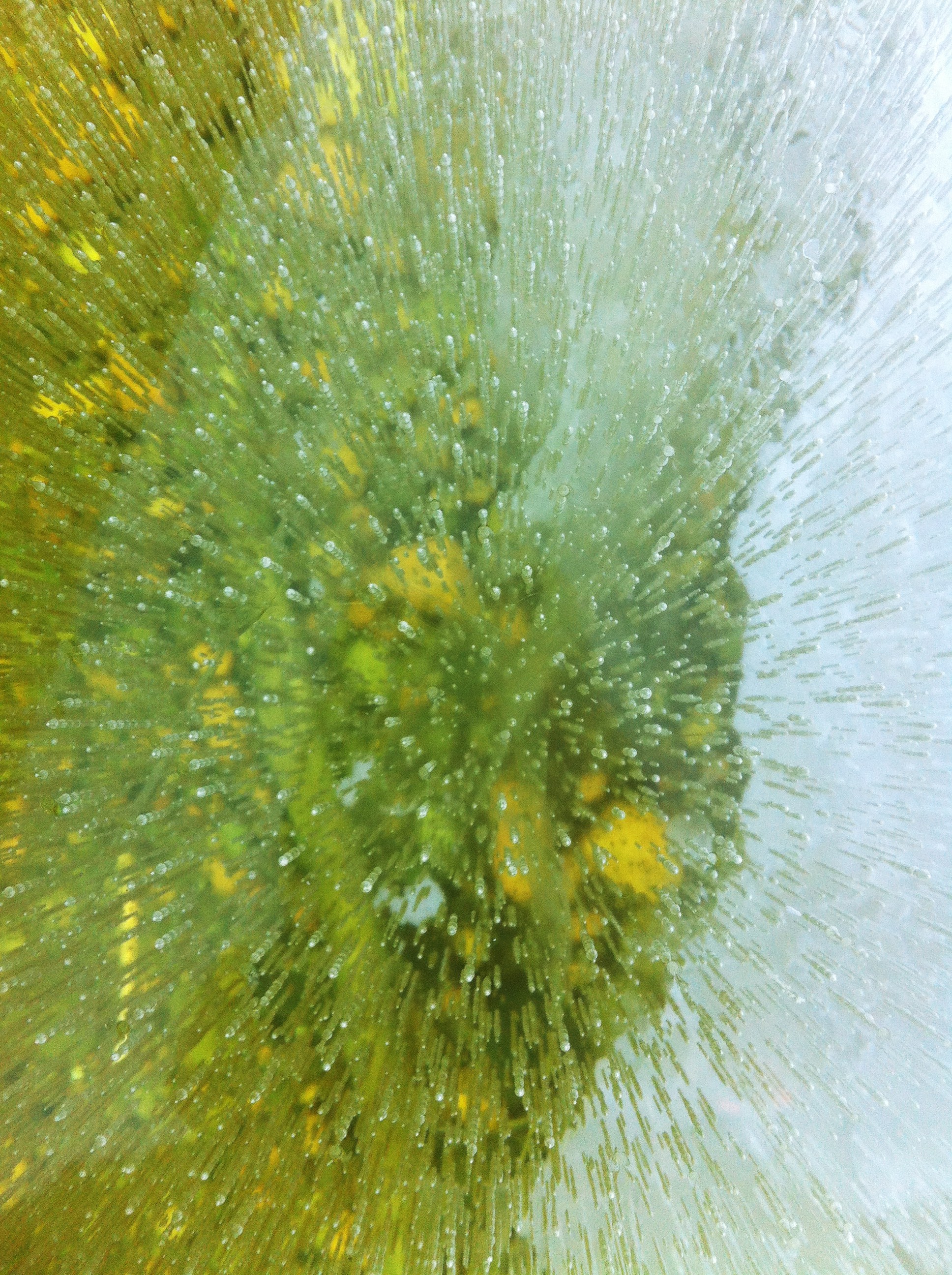 Why are there such similarities in shapes and forms that are found in nature? Why is that the millions of bubbles suspended in the ice of a frozen pond mimic the lattice of old bridges, or that the edge of a huge crack in that same ice, one of the cracks that stretches thirty feet in one direction and 4 inches down, has the same structure and form as a chunk of granite a few feet away at the water’s edge? Why does ice, frozen under the lake’s surface, look like a field of daisies, or the surface of a sea urchin, or the tentacles of a jellyfish?
