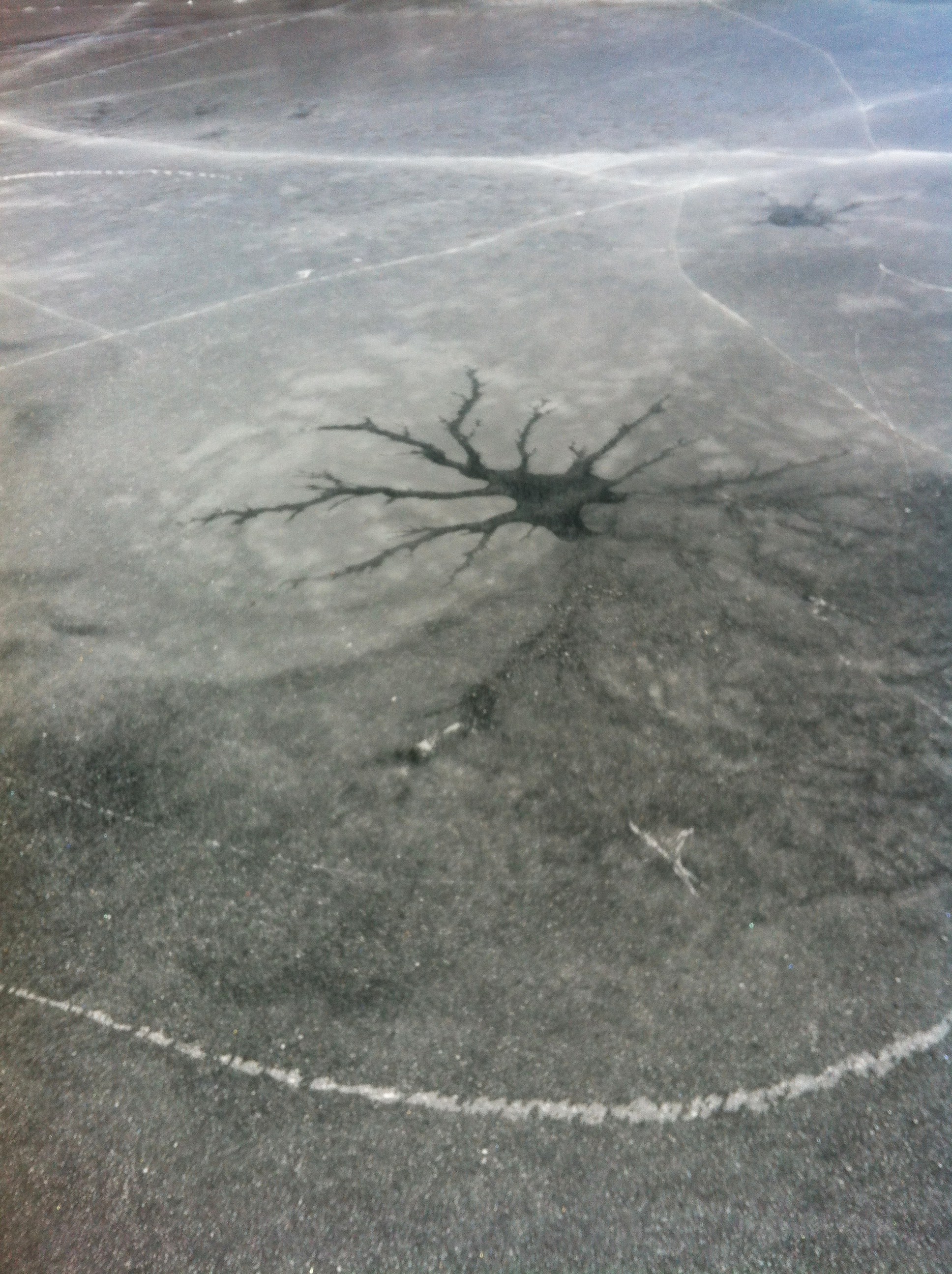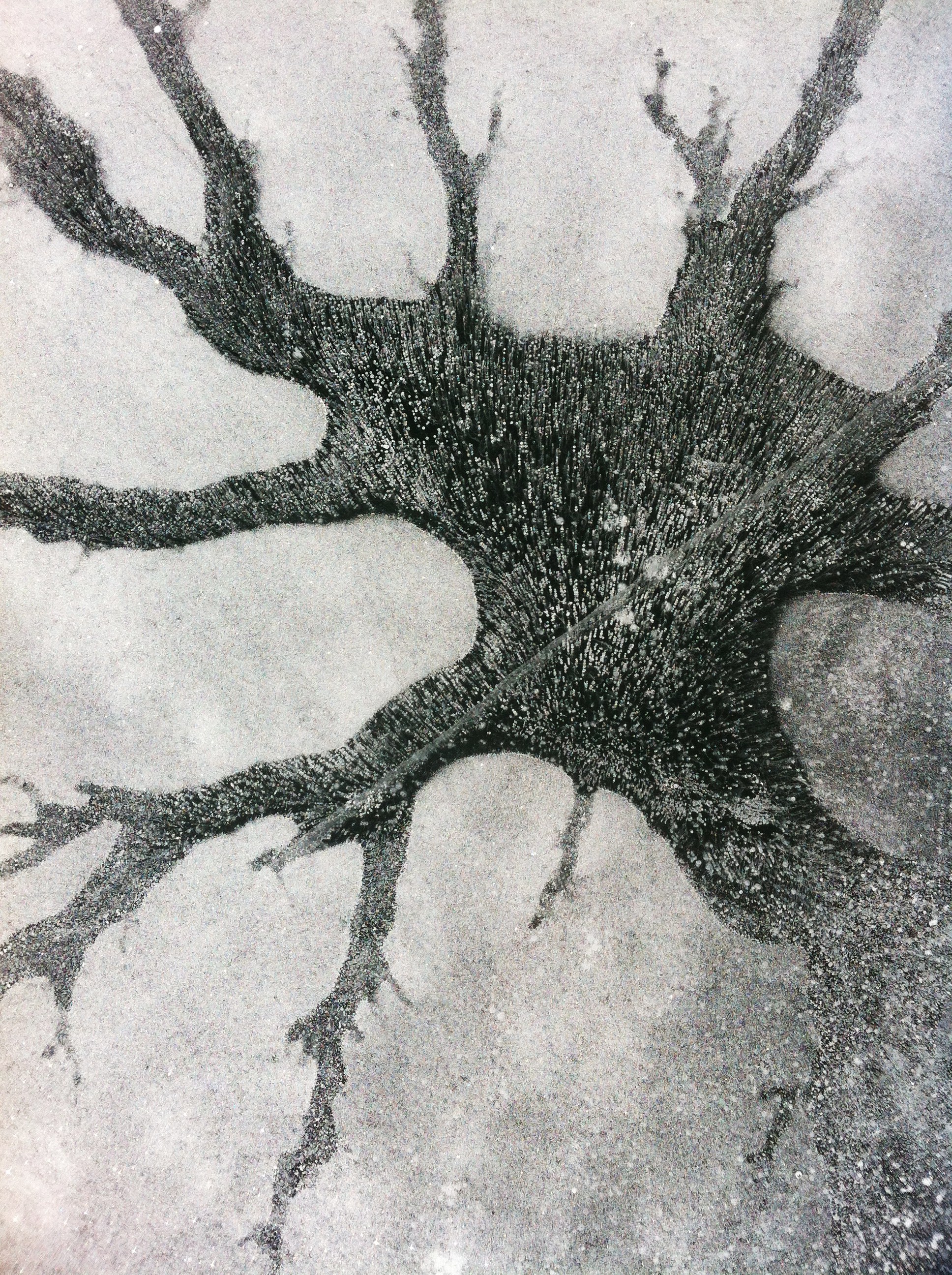 There are hotspots on the ice, on the lakes and ponds of our island, that look like black neurons embedded in the hard, icy surface. The pattern they make echoes perfectly the endings of our neural cells, or the pattern of growth in reindeer moss, or the paths of rivers as they progressively etch the surface of our planet.