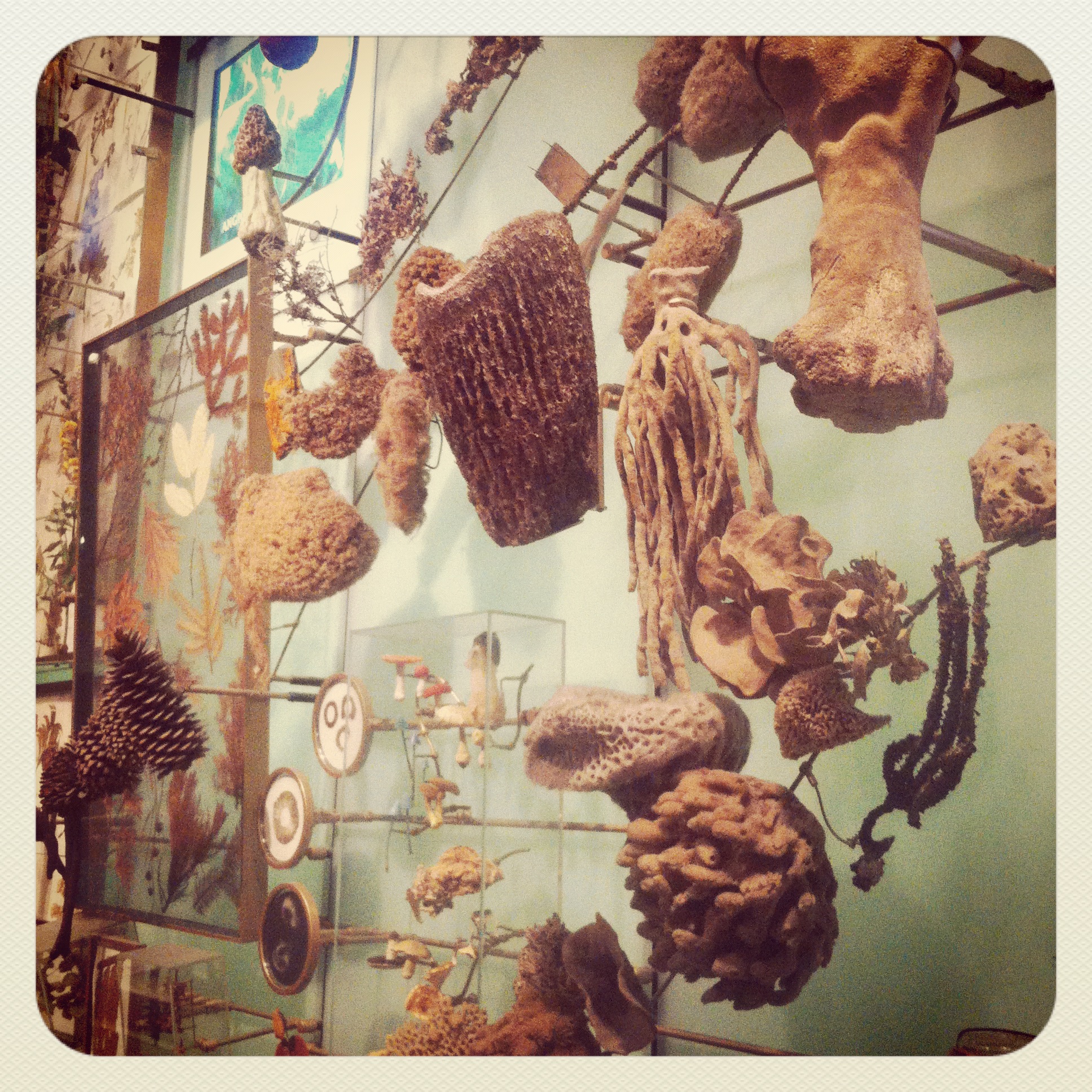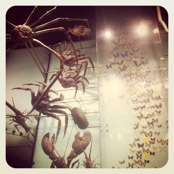 The Hall of Biodiversity is my favorite part of the museum. When I walk into this darkly lit room, I transform into a giddy little girl, so excited to see pressed flowers in frames, fish swimming through the air, acorns on a string, blown glass jellyfish and cast brass bacterium. Nowhere else can you take a turn around one room and walk through the Kingdom, Phylum, Class, Order, Family, Genus and Species of most creatures on Earth. In my dreams, I would have a house that looks like the Hall of Biodiversity…a seemingly living, breathing account of life on Earth, how it relates and how it has changed.